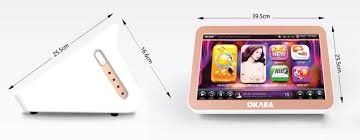 - Thiết kế công thái học giúp đầu karaoke OKARA H10 dễ dàng đặt để mọi vị trí, hình thái tam giác vuông với màn hình là cạnh huyền, từ nay bạn có thể đặt trên bàn, trên kệ dễ dàng mà không cần chân đế
