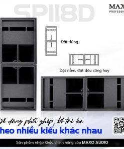 Loa Sub Đơn SP118D được thiết kế với khả năng bố trí linh hoạt, có thể đặt theo nhiều chiều khác nhau, dù đứng thẳng hay nằm ngang thì SP118D vẫn đảm bảo hiệu suất âm thanh tối ưu.